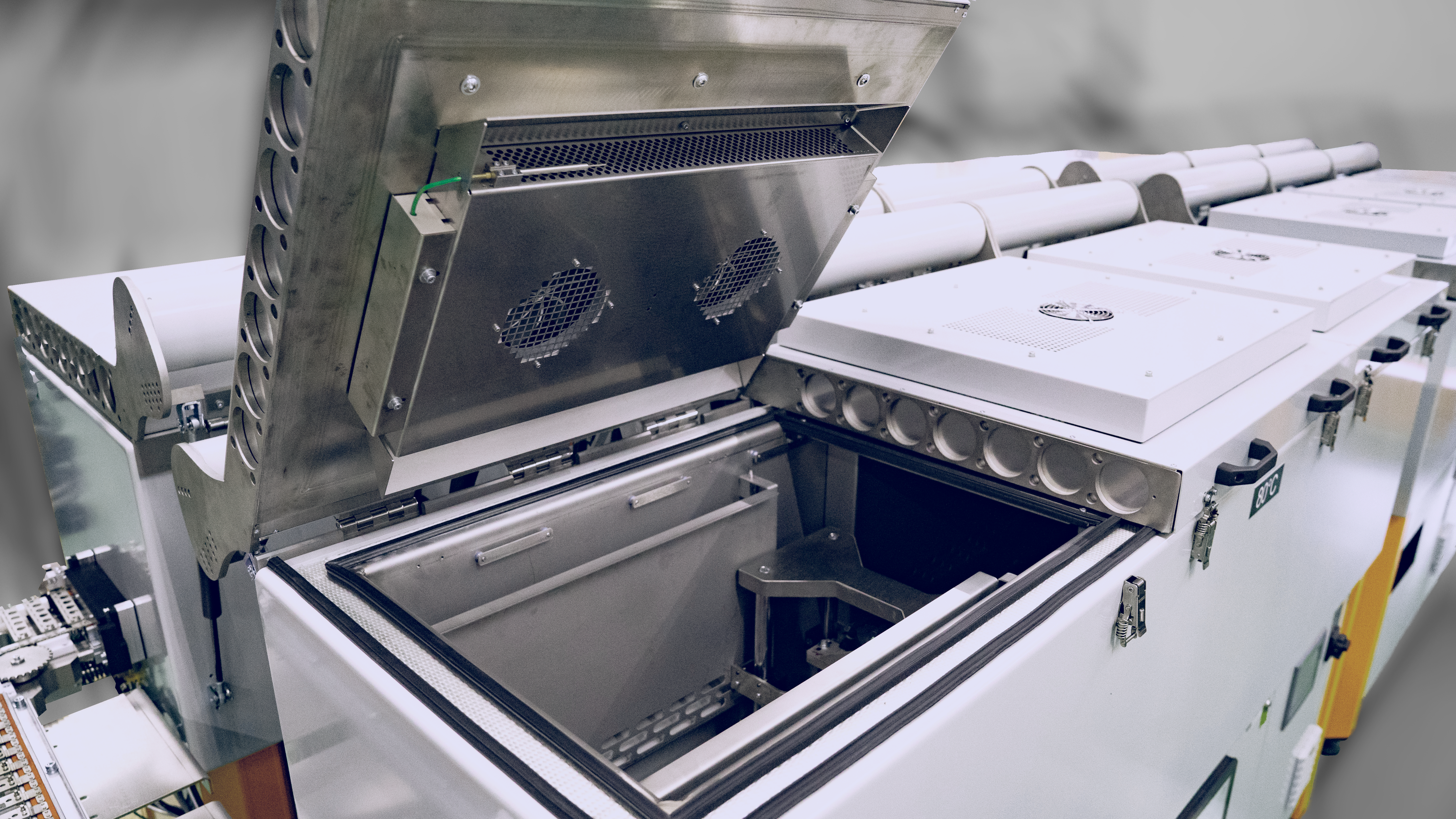 A special feature of the ThermoLine is that testing/calibration or assembly processes can be integrated into the continuous oven. Thanks to the modular concept, the thermal sections can be varied in length, height and width, depending on the product size and required throughput time. Each module has its own heating and, if necessary, cooling system. Large doors in the modules ensure particularly good accessibility in the thermo lines.