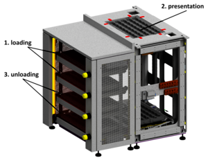 During automatic operation, pallets can be removed or inserted at any time without interrupting machine operation. The TrayLine can be designed for pallets of different formats. The pallets are moved individually to achieve maximum precision and accuracy. Thanks to its high level of standardization, the TrayLine is particularly cost-effective and can be expanded modularly to increase the storage capacity and thus the autonomy of the system.