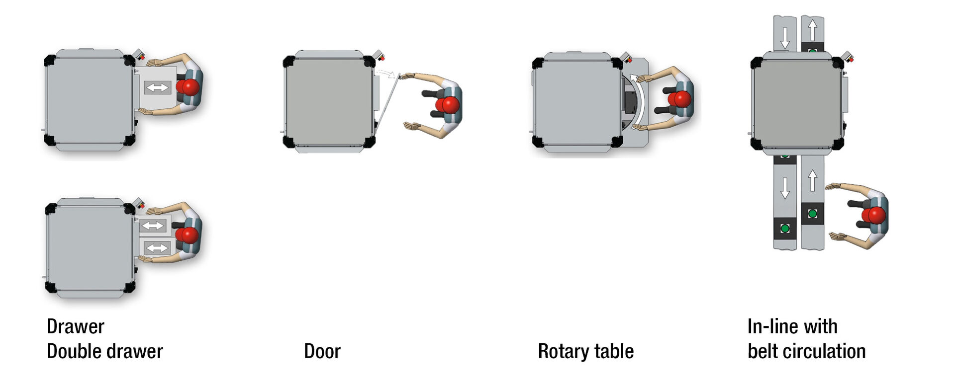 Las piezas pueden introducirse en la zona de trabajo de la siguiente manera: