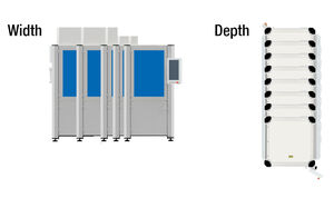 La tecnología estandarizada de la máquina ofrece diversas opciones de tamaño, lo que permite elegir entre anchuras de 800 mm a 2200 mm y profundidades de 1000 m a 2200 mm. Este sistema modular flexible permite realizar máquinas especiales a medida. En una célula AM 100 de 1000 mm de anchura y 1000 mm de profundidad cabe la tecnología de proceso de la mayoría de los métodos de procesamiento láser.