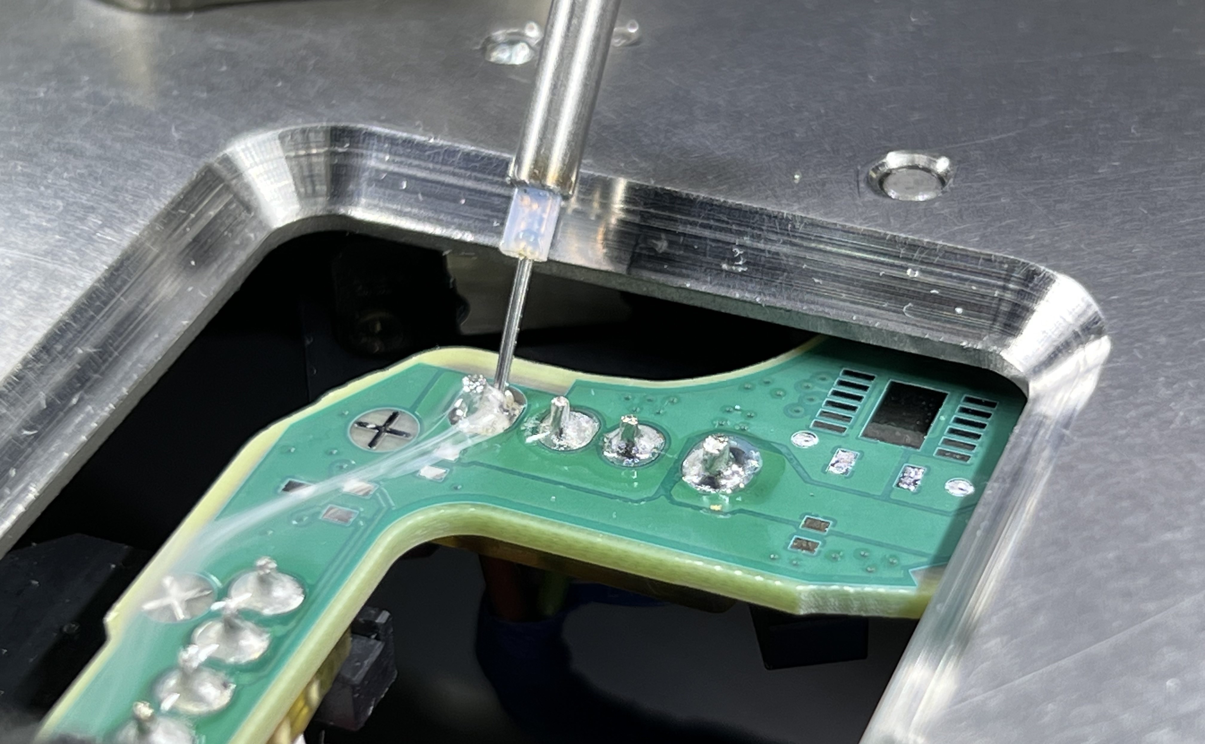 The soft, partially melted solder wire melts completely on the PCB or pin. The PCB and pin must be preheated accordingly, otherwise there is a risk that the solder will not be melted off.