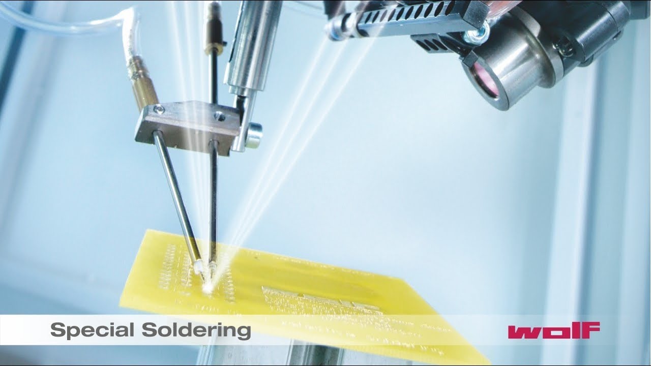 Selective soldering systems can be set up as fully automatic machines in "in-line design" or as manual workstations. The basis is the Wolf standard cell.